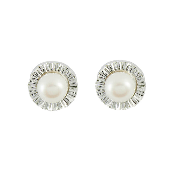 Brinco banhado a ródio com pérola de água doce.Tamanho: 1,3 cm de diâmetro.Ref.: 145