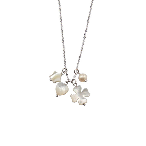 Colar banhado a ródio com pingentes de madre pérola. Tamanho corrente: 80 cm de comprimento.Pingentes: média de 1 cm de diâmetro. Ref.: 69
