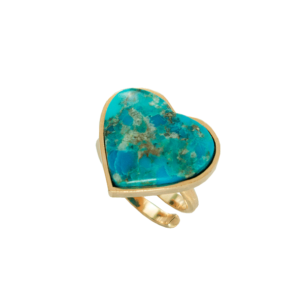 Anel confeccionado em prata, banhado a ouro com turquesa natural. Tam: ajustável do nº 14 ao nº 25 Ao adquirir o seu anel ajuste no tamanho do dedo que deseja...