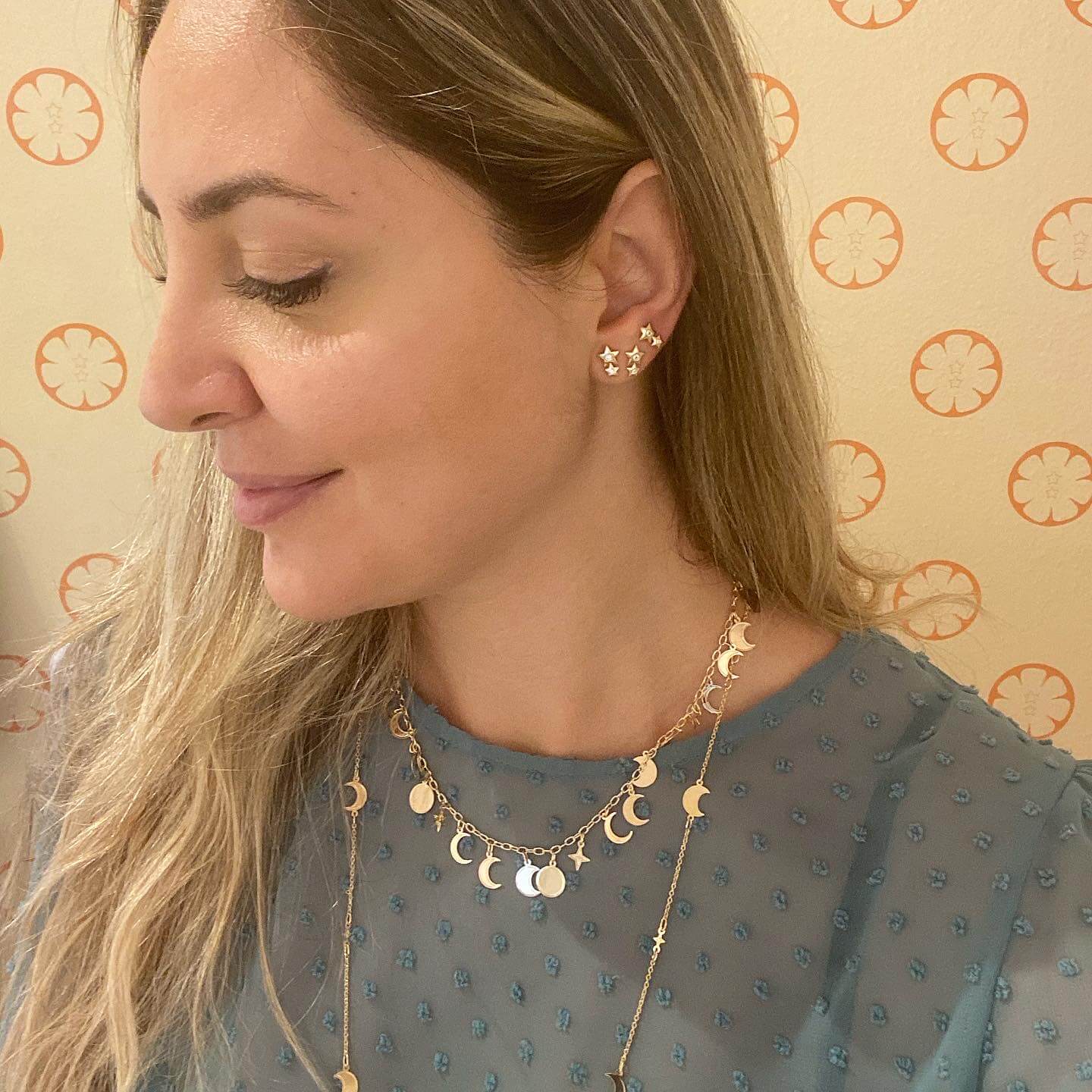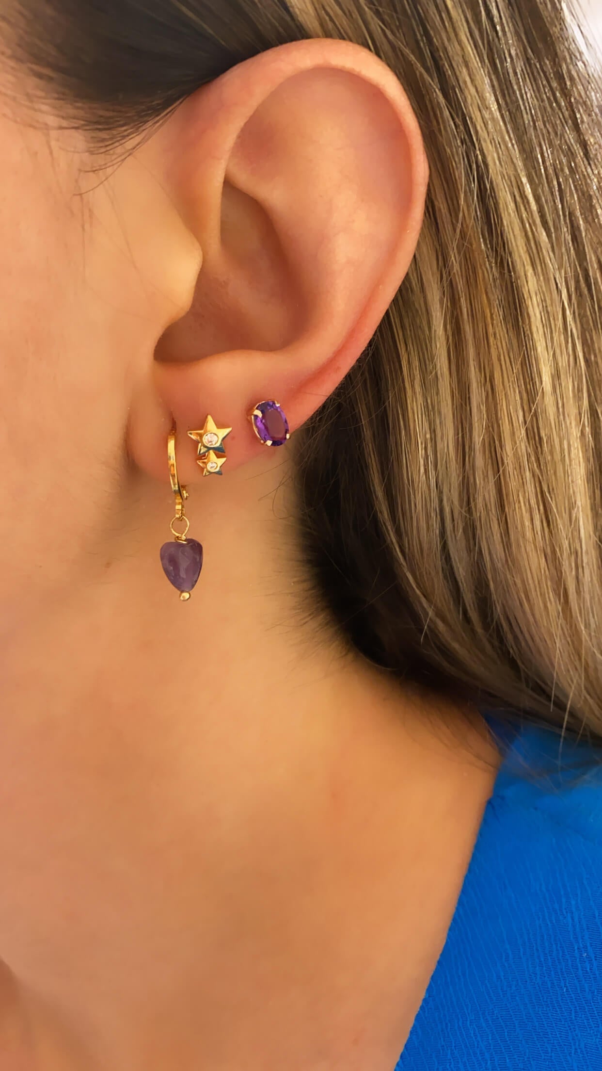 Brinco banhado a ouro com zircônias.Tamanho: 1 cm