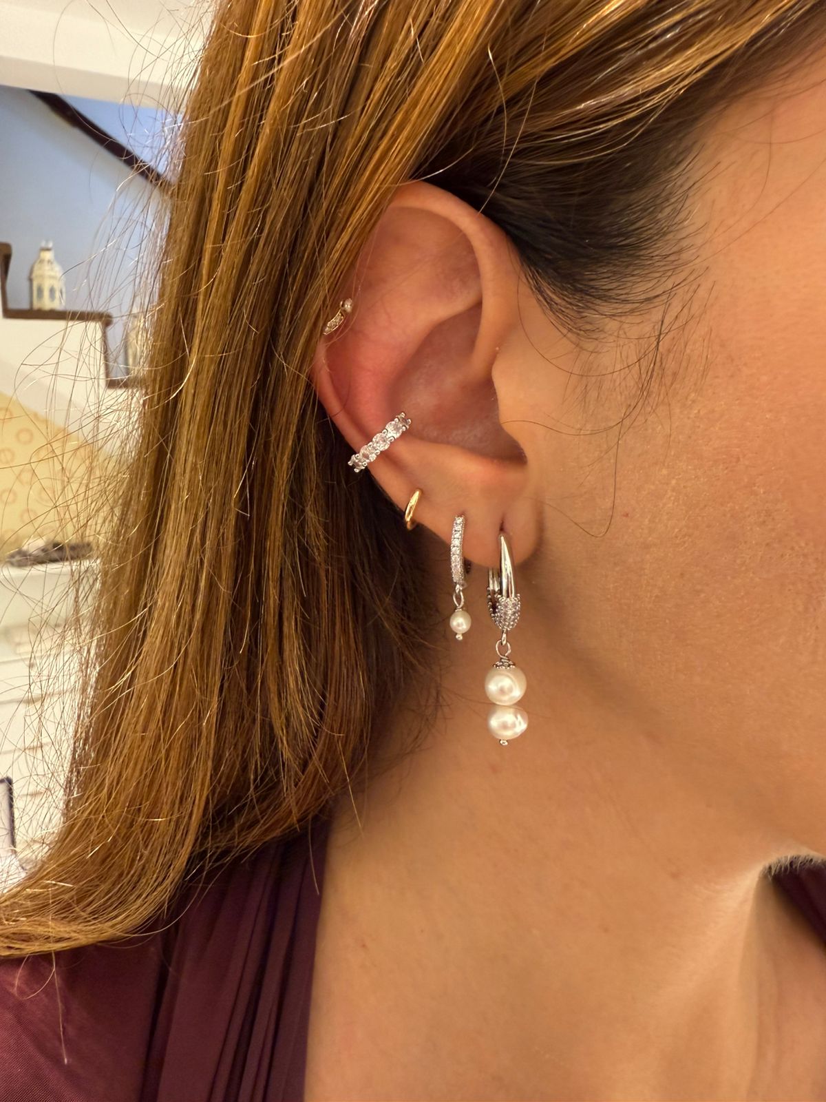 Argola banhada a ródio com zircônias e pérola de água doce.