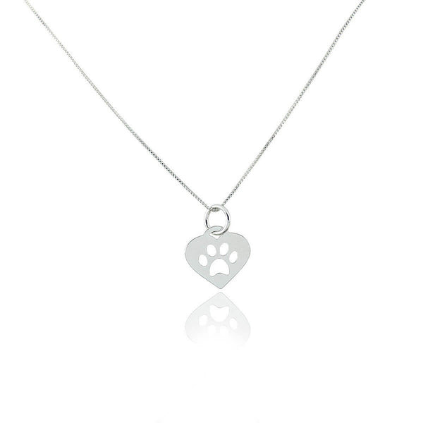 Colar banhado a ródio com pingente de patinha. Tamanho corrente: 40 cm + 5 cm de extensor. Tamanho pingente: 1,5 cm de diâmetro.Ref.: 488