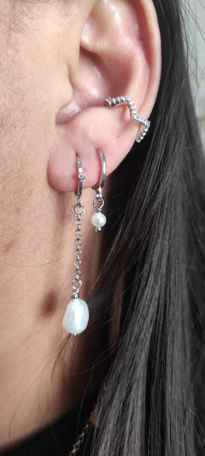 Argola banhada a ródio com pérola.Tam: 4 cm de comprimento.