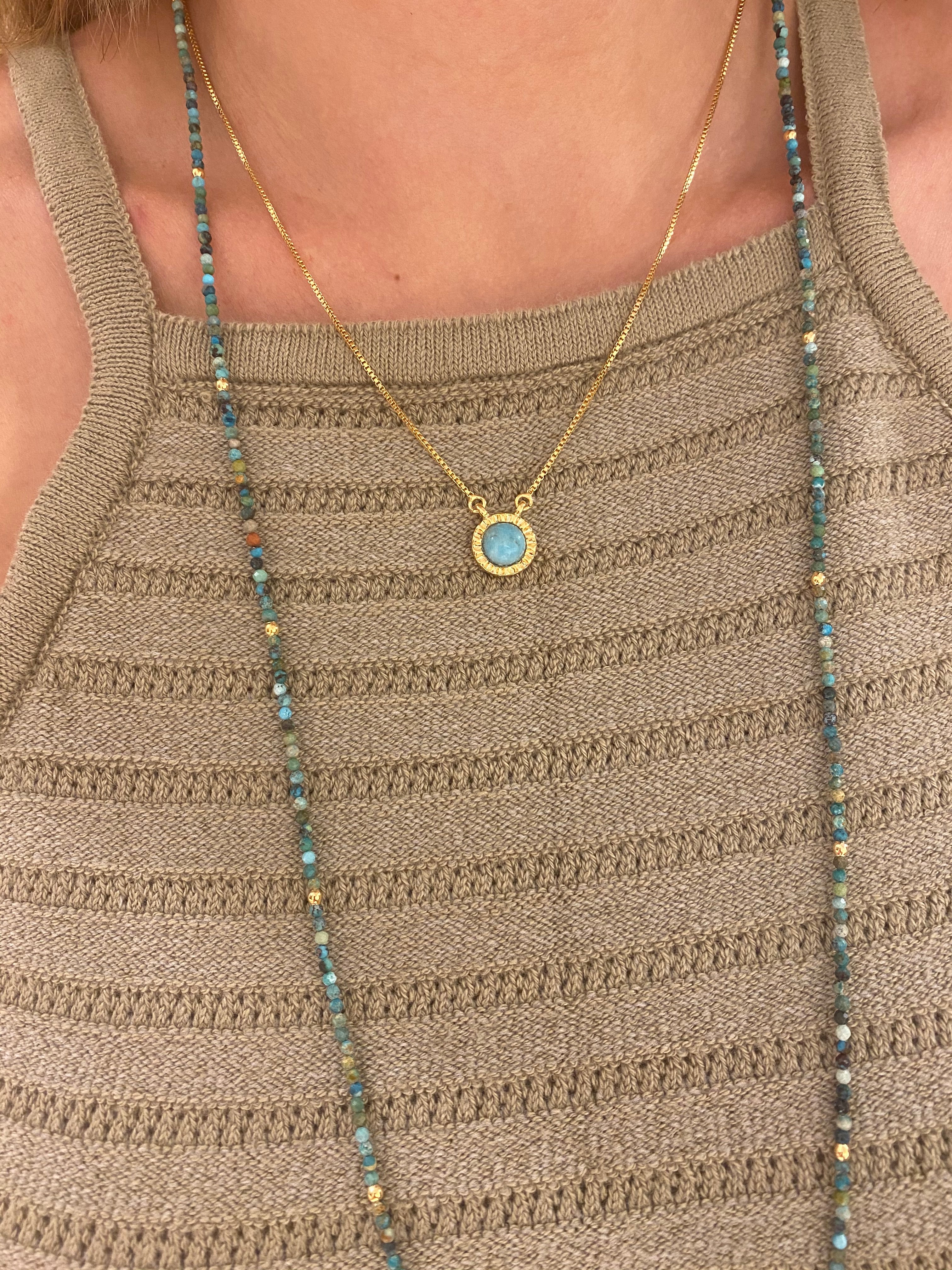 Colar banhado a ródio com amazonita.Tam: 40 cm + 5 cm de extensor.