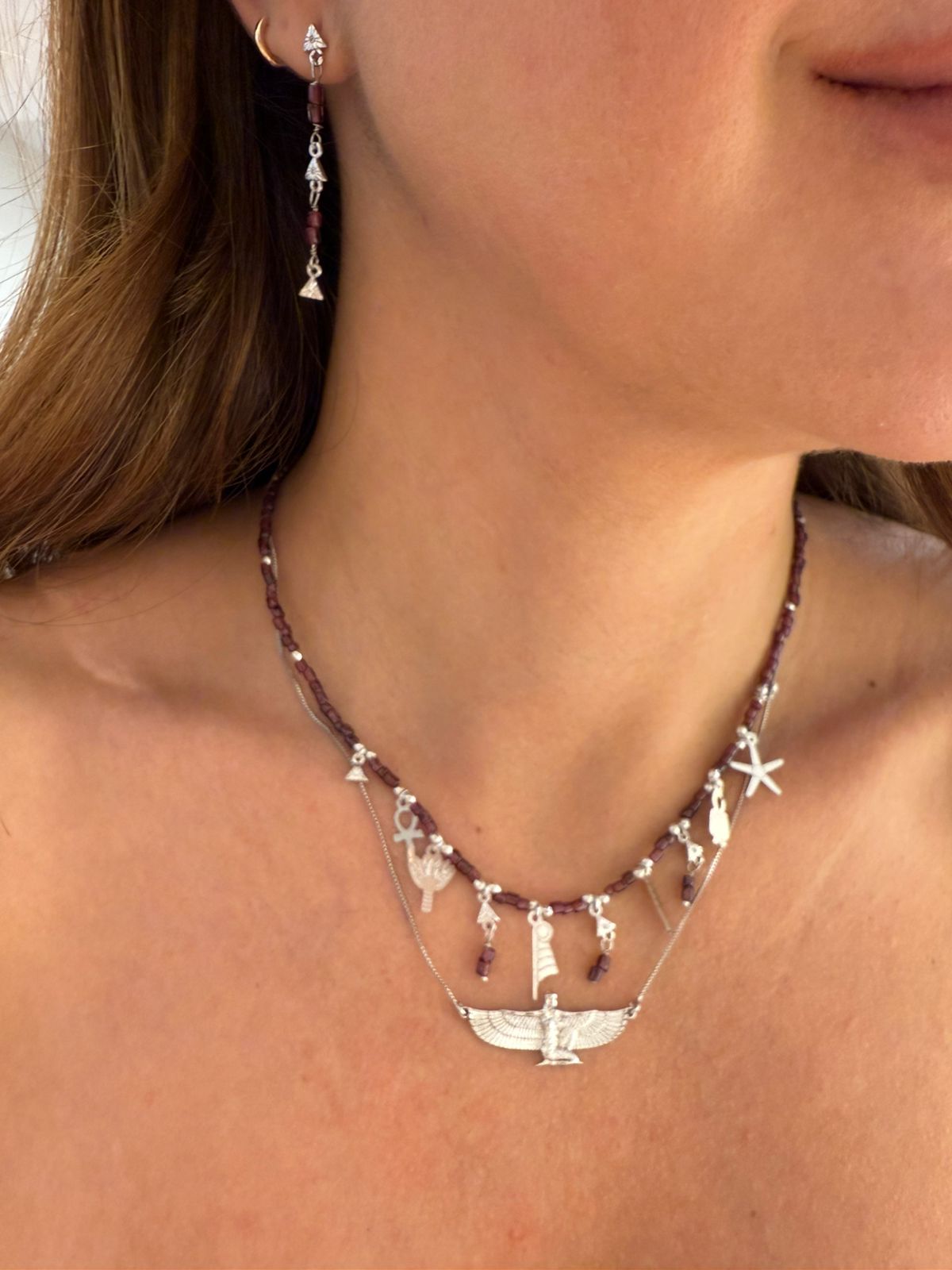 Colar banhado a ródio com pingente da deusa egípcia Isis.