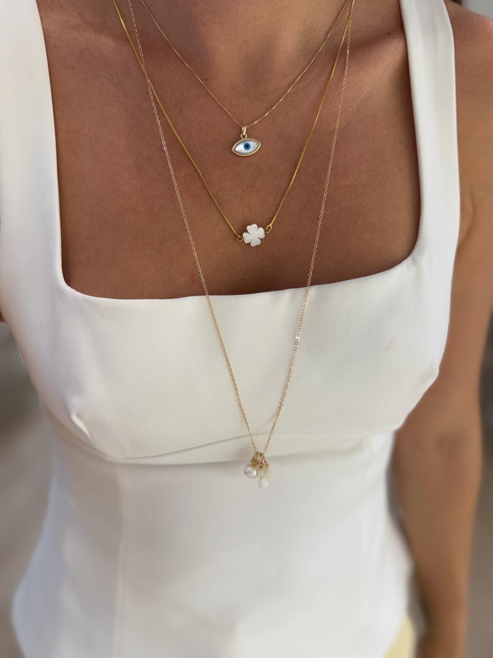 Colar banhado a ouro com olho grego de madrepérola.