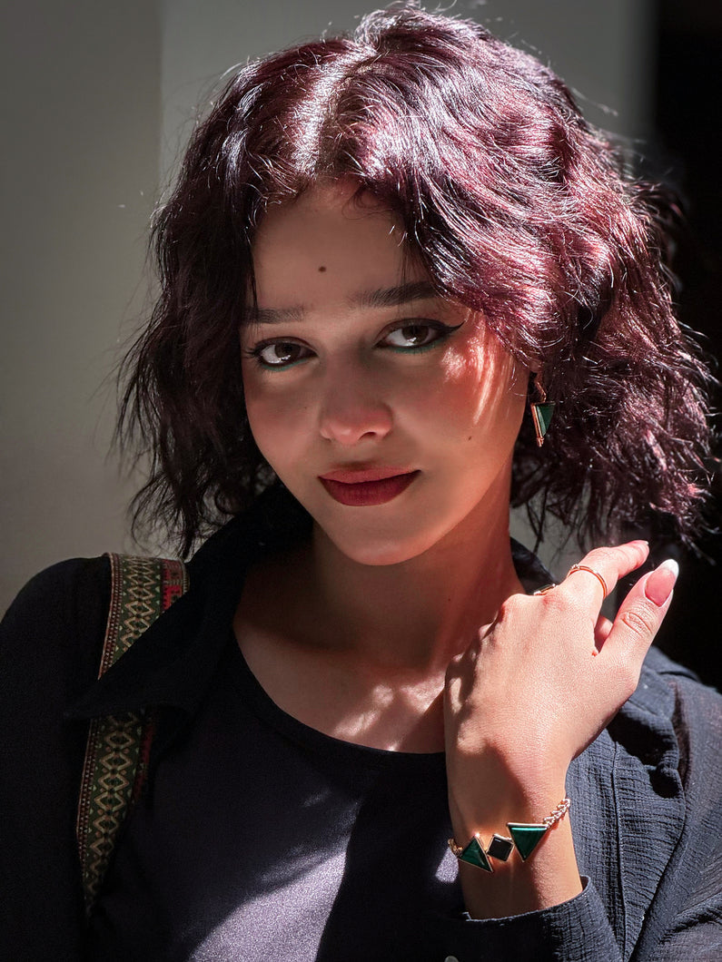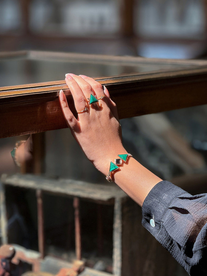 Bracelete banhado a ouro com malaquita, ônix e zircônias.