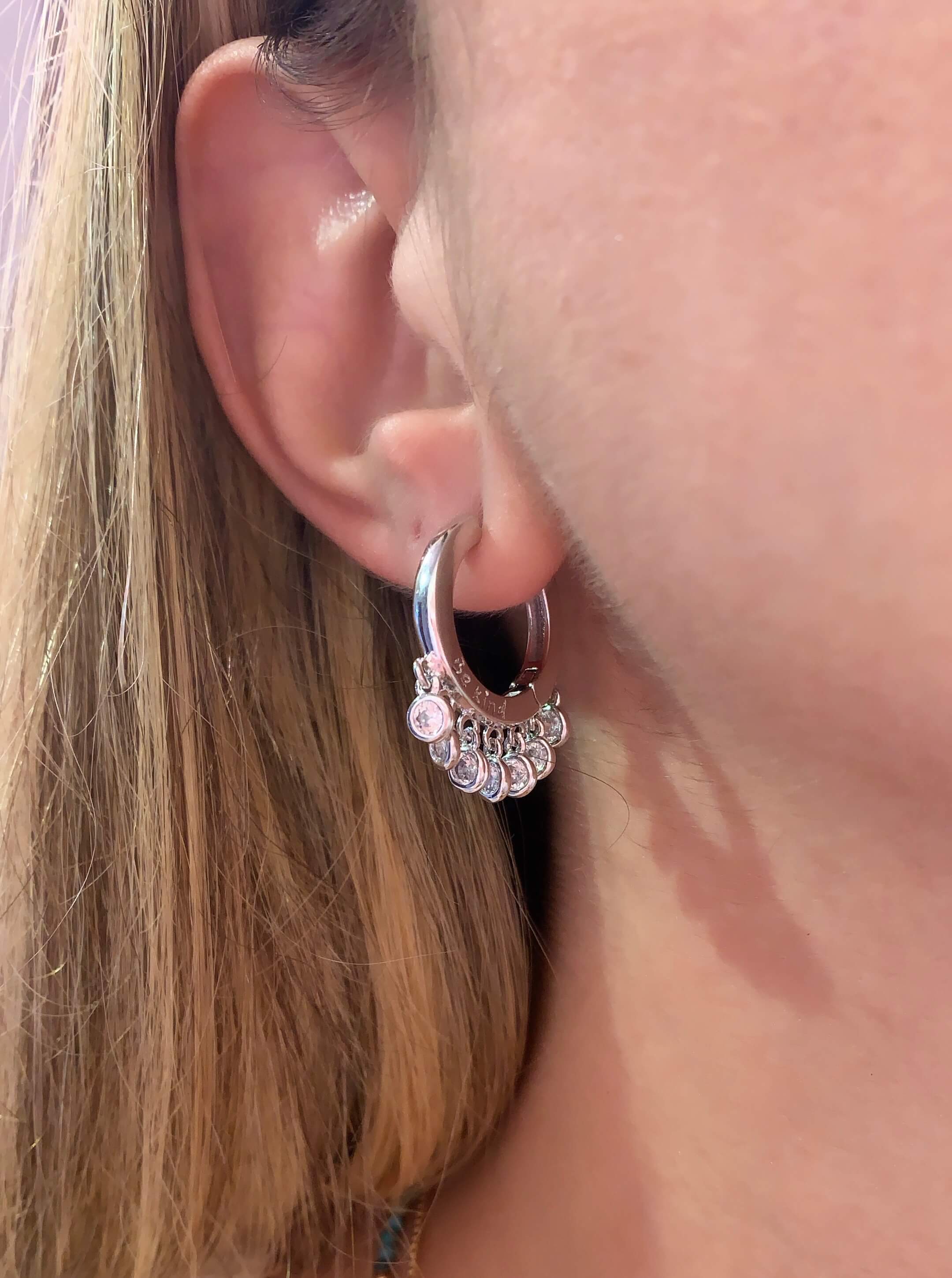 Argola banhada a ródio com zircônias.Tamanho: Argola com 2 cm de diâmetro.