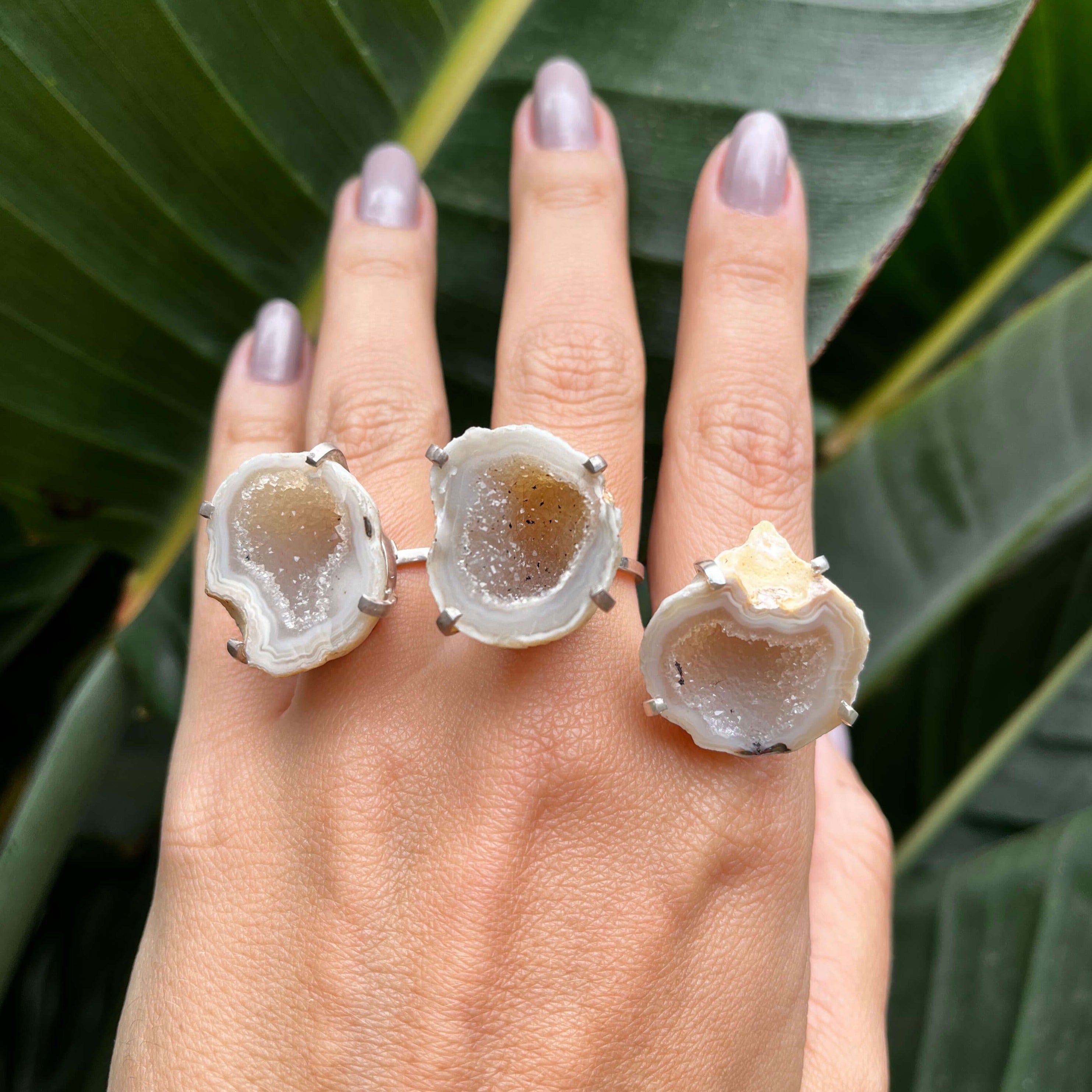 Anel em prata com geodo de ágata.Tamanho: Ajustável do 12 ao 23.*Por se tratar de uma peça vazada, é necessário ter o cuidado de não ficar mudando o tamanho.