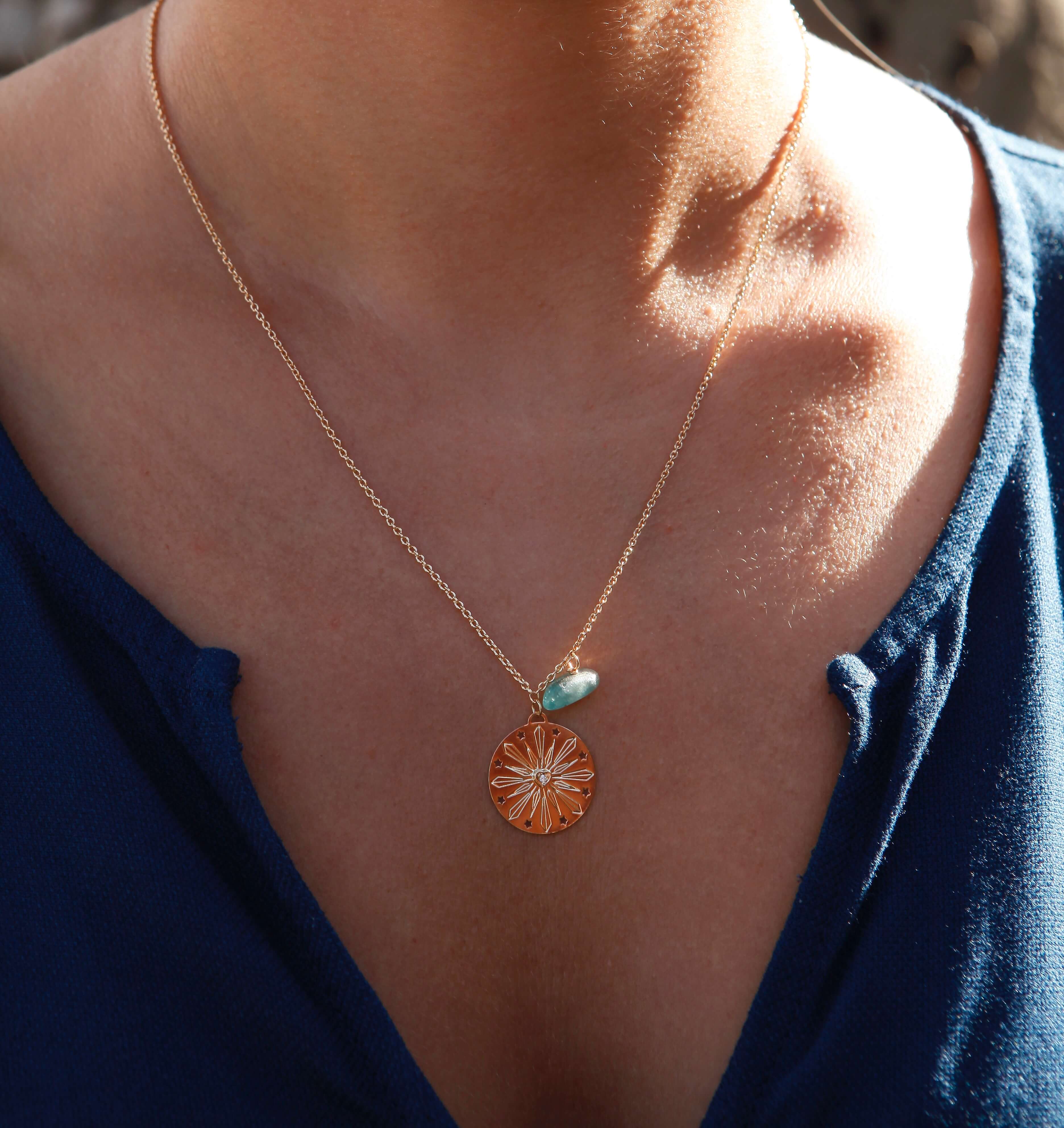Colar banhado a ouro com zircônia e apatita.Tamanho: 45 cm + 5 cm de extensor e pingente com 2,0 cm.