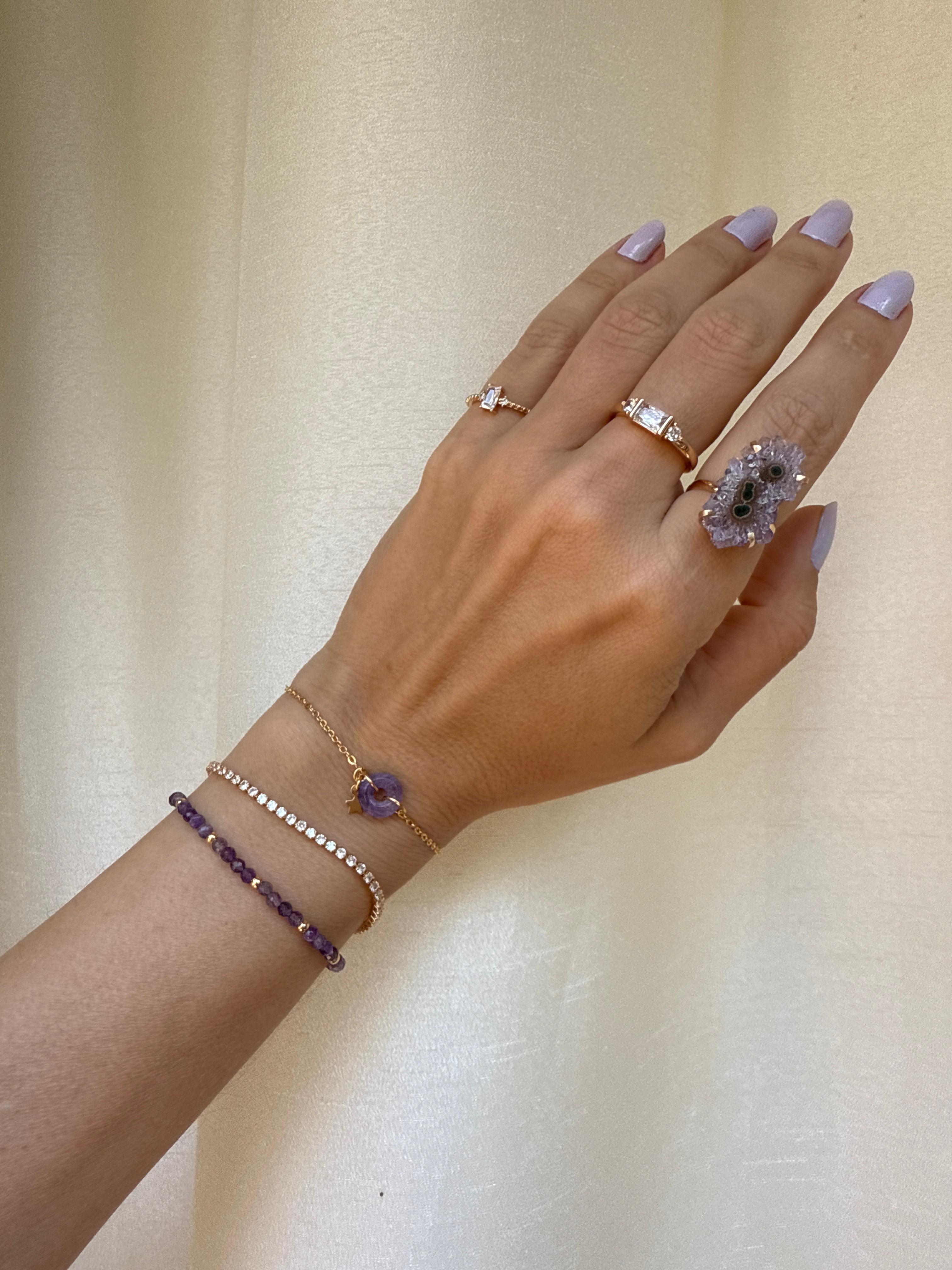 Por se tratar de uma pedra natural, a tonalidade da ametista pode variar da foto